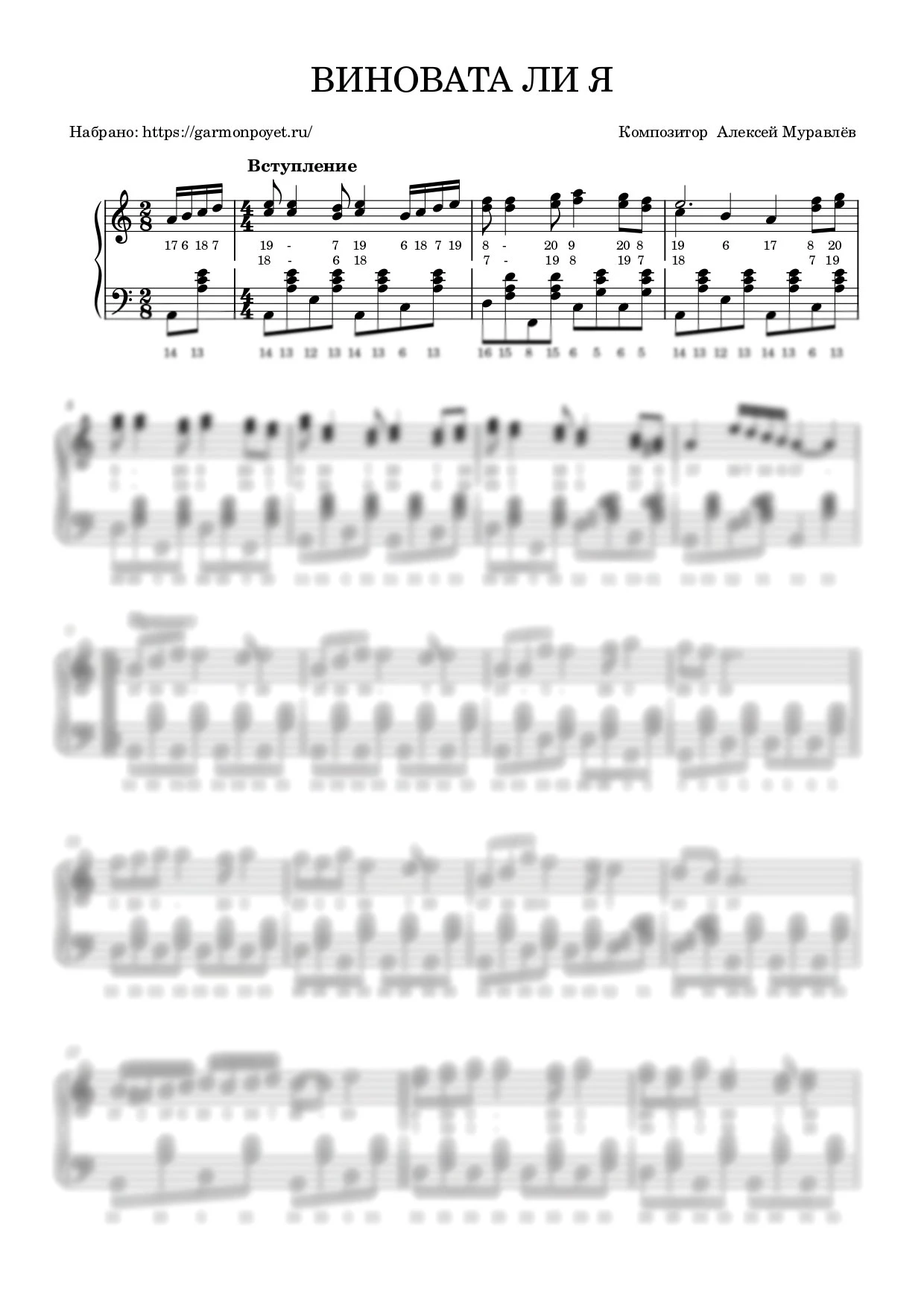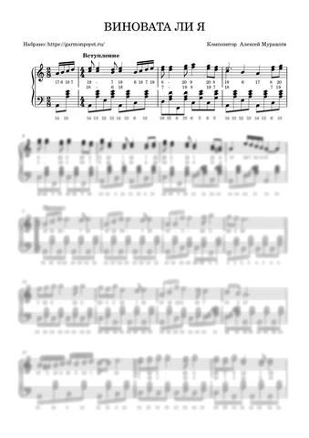Виновата ли я — ноты для исполнения на гармони